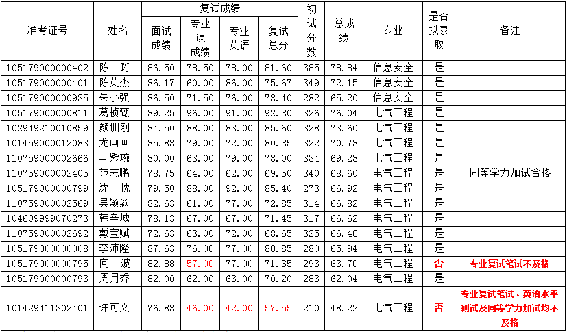 信息工程学院2019年研究生入学总成绩及拟录取公示(第一轮)