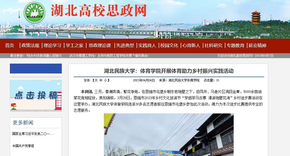 【湖北高校思政网】3044am永利集团3044noc:体育学院开展体育助力乡村振兴实践活动