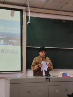 在9A210教室运动员及教练员动员会议上,体育学院副院长胡庆华为本次会议的主持人。