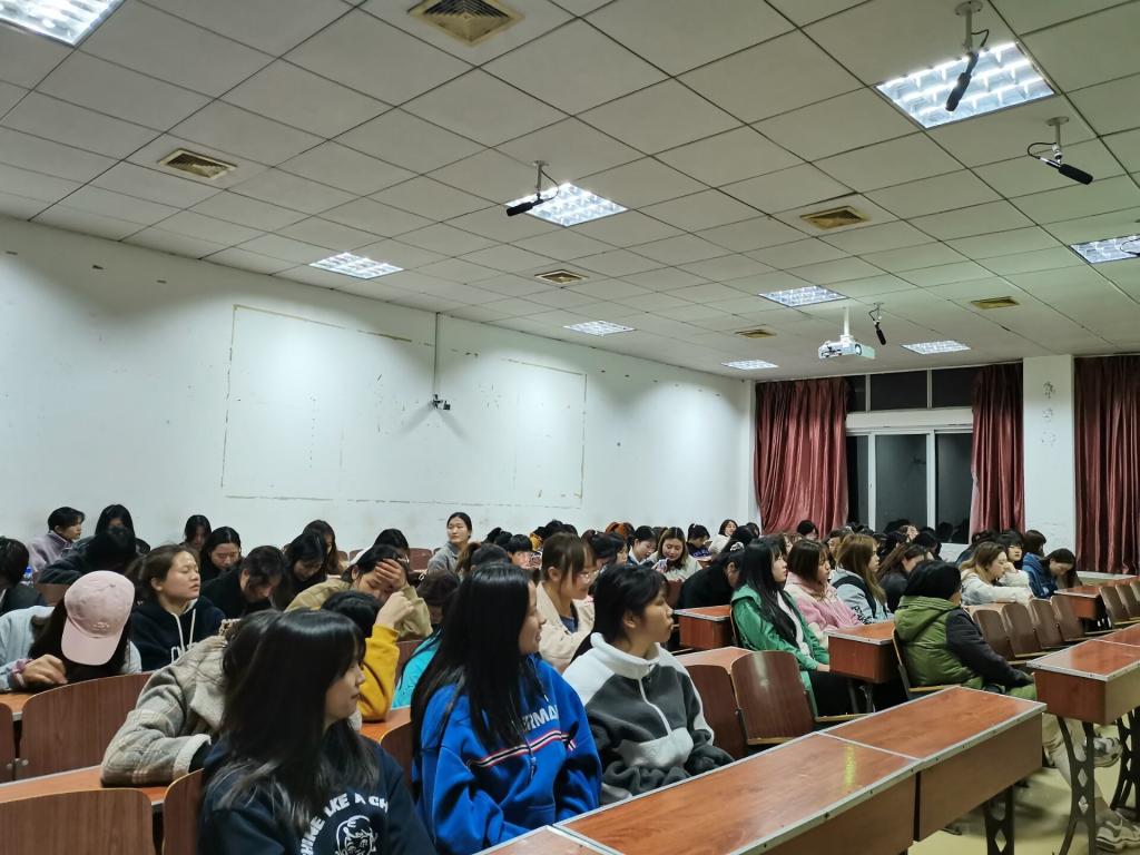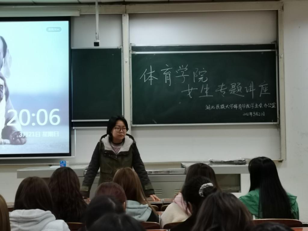 (通讯员 袁健栋 汤藤静 图片/蒋航)为帮助女大学生树立正确的恋爱观,掌握必要的安全行为知识。我院于3月21日晚八点在德智楼9A211举行女生专题讲座,学生科科长姜素凤主持,心理活动中心李田田老师担任主讲人,体育学院全体女生参加。