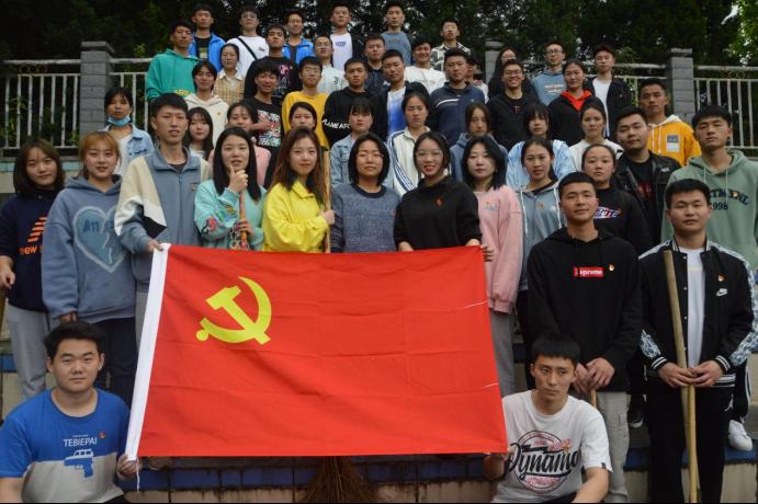 (学生党支部和入党积极分子劳动合影)