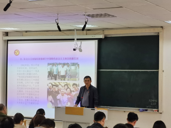 活动伊始,体育学院倪院长以“中国共产党百年体育精神的实践与传承”为题开始向在座党员授课,倪院长从新民主主义体育形成、发展与传承到当代体育事业的探索与发展向大家讲述了中国体育史艰辛探索与曲折发展。随着近百年的发展中国体育事业进入新时期、邓小平改革开放与中国特色社会主义体育的开创,社会主义市场经济体制下中国特色社会主义体育的新发展、习总书记坚持改革开放办体育理念推进体育管理体制改革,广泛开展全民健身活动,促进体育强国建设等体育政策使体育在广大人民的日常生活中变得越来越重要。紧接着倪院长给大家分享了中国共产党百年体育实践的基本经验启示希望大家继续传承体育核心价值为中国体育贡献我们党员的一份力量。