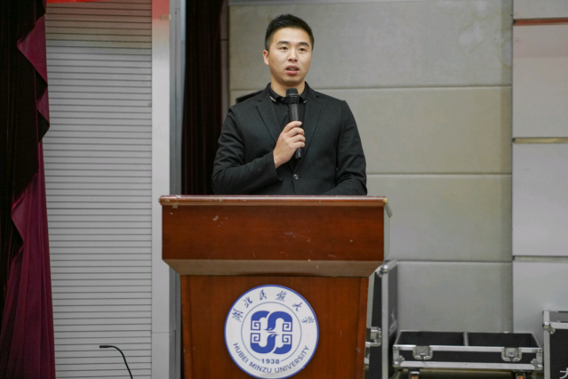 朱欢老师代表我院教师发言,他建议同学们要树立明确的目标,并且要根据时间细化目标;一定要考研,争取更高的舞台;要跟着老师多参加一些有益的活动,提高自己的综合能力。