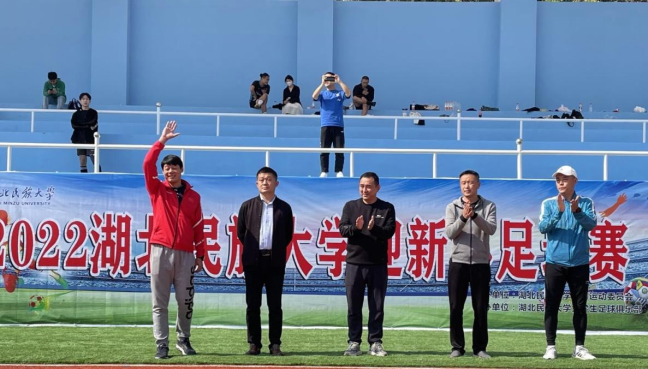 最后,到场的学院领导们到足球场中心进行开球仪式。