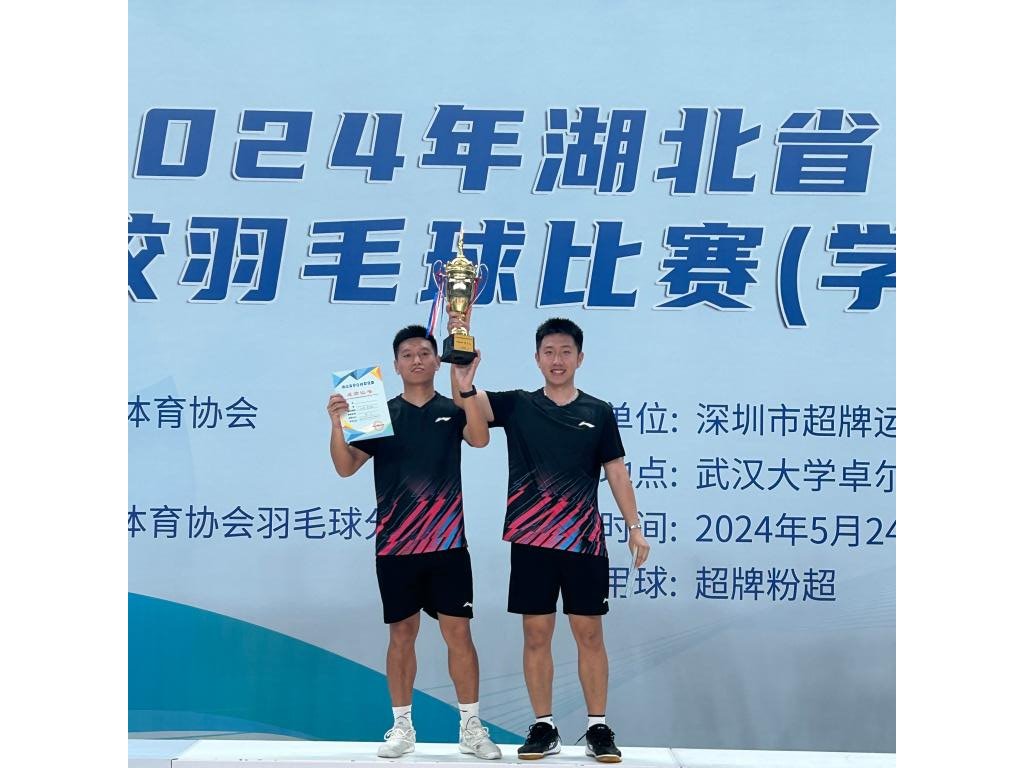 2024年5月24日-26日,湖北省普通高等学校学生组羽毛球比赛(学生组)在武汉大学卓尔体育馆举行。本次比赛汇聚全省95所高校1346名运动员,永利官网由张辉、周一系两名教师担任教练员带领21名运动员参赛,经过努力拼搏,永利官网荣获男子丙B组(体育院校组)团体季军;谭朕(研究生)、张然摘得丙B组男子双打冠军;向石天(研究生)、赵雕;杨飞、岑雪莲分别闯入丙B组男子双打、混合双打16强。