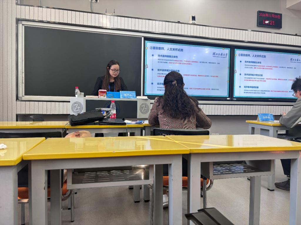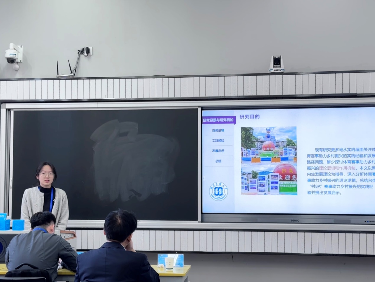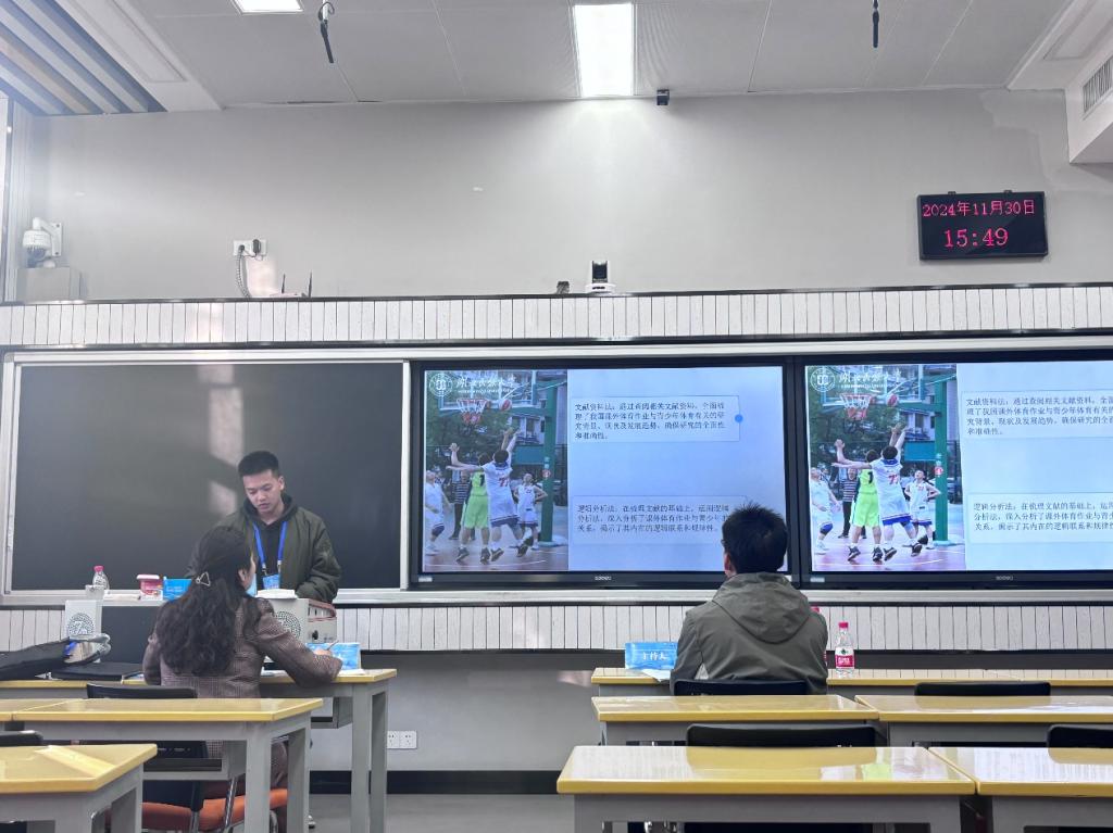 由张辉老师、王先茂老师带队,五位研究生(向石天、李周、陈代业、李颖、徐莉)进行了专题报告,内容涵盖体育教学设计、体育产业发展、群众体育等多个领域,展现了多样化的学术视角和创新性思维。李平、石佳欣、向谦、曾炳富等四位研究生通过墙报展示形式,分享了各自的研究成果,充分体现了在体育教育、运动科学和体育产业研究中的学术积累与探索创新。