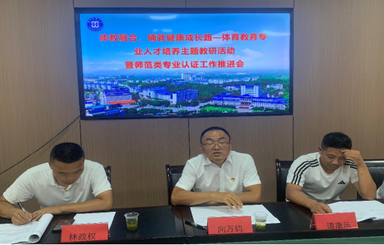 为落实“体教融合,校校合作”,加快推进师范专业认证工作,全面提升我院师范教育质量,6月18日下午,我院在会议室开展体育教育专业人才培养主题教研活动。参会人员包括:实习单位恩施市思源学校校长向万钧、思源学校体育组教师、3044am永利集团3044noc体育学院书记赵魁轩、院长何斌、副院长胡庆华、副院长张辉以及教师和学生代表。会议由体育学院副院长胡庆华主持。