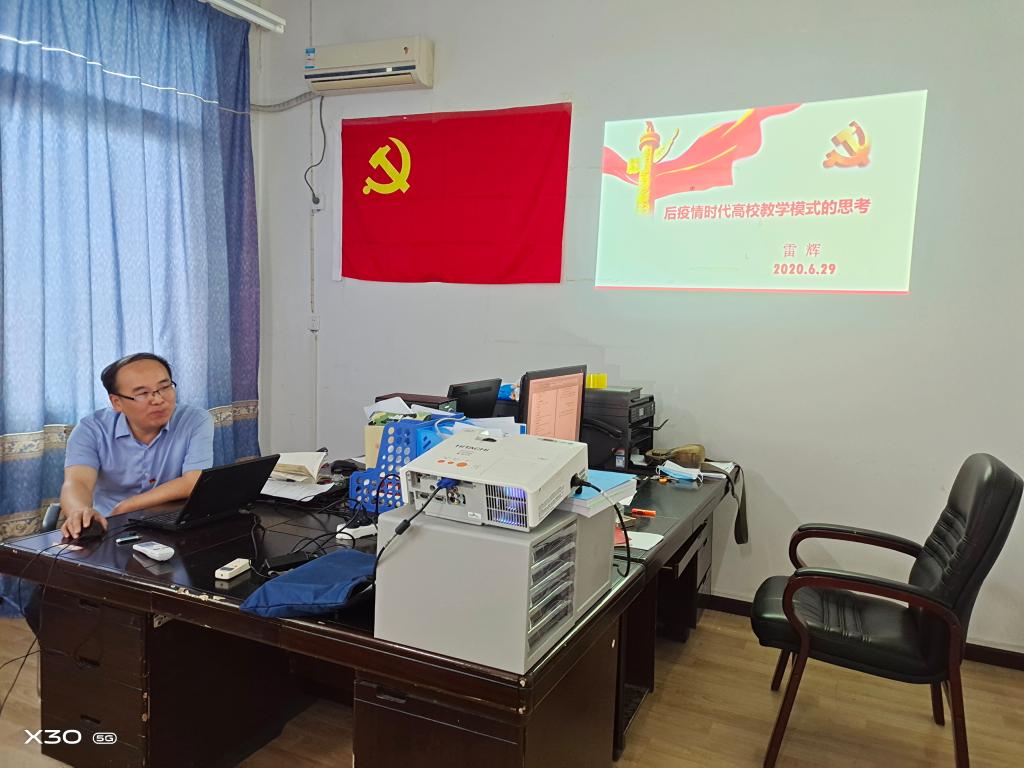 会上,雷辉同志以《后疫情时代高校教学工作的思考》为题给大家讲授党课。他结合今年春季学期高校教学现状深刻分析了后疫情时代高校教学存在的问题和困难,并就后疫情时代如何解决教学问题和摆脱困难提出了自己独到见解,还就后疫情时代如何补齐线上教学短板提出相关对策。