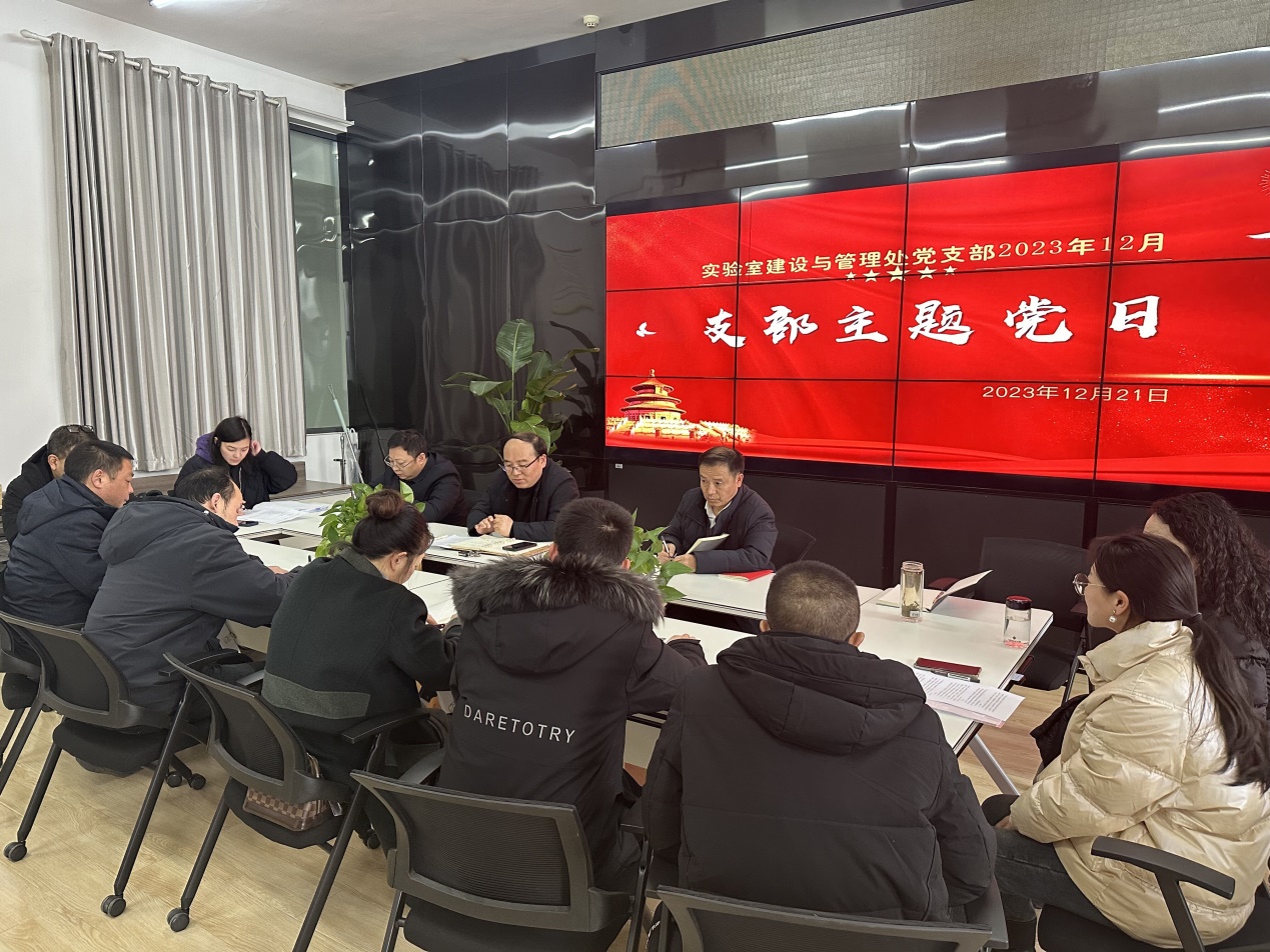 1221日下午,实验室建设与管理处党支部在5B701开展以“持续加强学习  凝聚共识力量”为主题的支部主题党日活动。