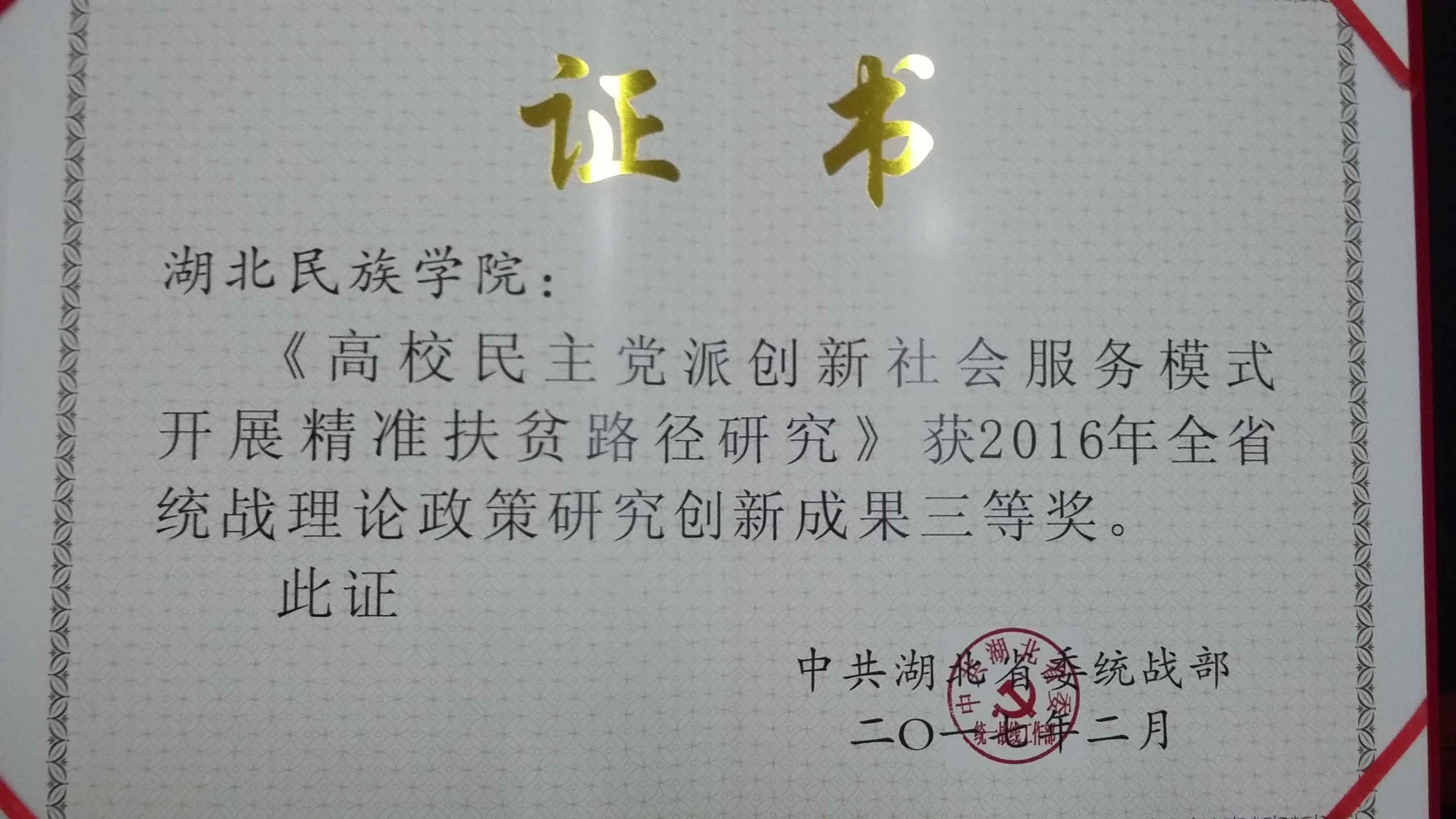 永利官网论文获省委统战部2016年全省统战理论政策研究创新成果三等奖