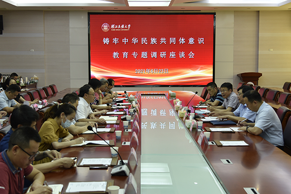 省民宗委民族二处处长谭兵介绍了此次调研的目的,充分肯定了永利官网开展铸牢中华民族共同体意识教育的做法。调研组一行与学校相关学院和职能部门负责人就如何开展铸牢中华民族共同体意识教育进行了深入交流和探讨。