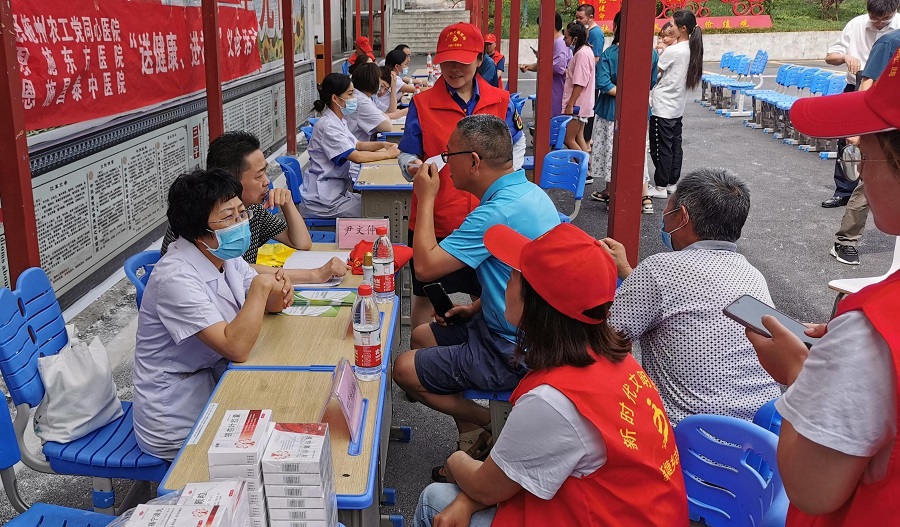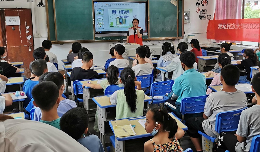 上午的活动在双河初级中学进行。3044am永利集团3044noc附属民大医院、恩施昌泰中医医院、恩施东方医院、恩施爱尔眼科医院的中医、儿科、妇科、内科、骨科、眼科等专科医生组成的医疗专家团队为社区居民开展了送医送药义诊活动,现场共接诊370人次,免费发放常用药品价值3500余元;妇产科主任医师陈宏芳教授现场为社区妇女健康咨询,在教室为学生家长举办了一场关于“妇女健康知识”的专题讲座;国家二级心理咨询师赵锦华副主任医师为留守儿童集中开展了心理辅导,帮助孩子进行自我识别和化解日常生活中的不良情绪,并用实验心理学中的“绘图法”进行了儿童心理健康筛查。