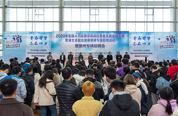 当天,刘艳红还出席了在永利官网篮球馆举办的2020年全国人力资源市场高校毕业生就业服务周暨湖北省就业援藏援疆活动恩施州专场招聘会启动仪式并致辞。省民宗委党组成员、副主任李爱旻,省劳动就业局局长熊娅玲,恩施州副州长高敬佩及省援藏办、省援疆办等部门领导出席了招聘会启动仪式。