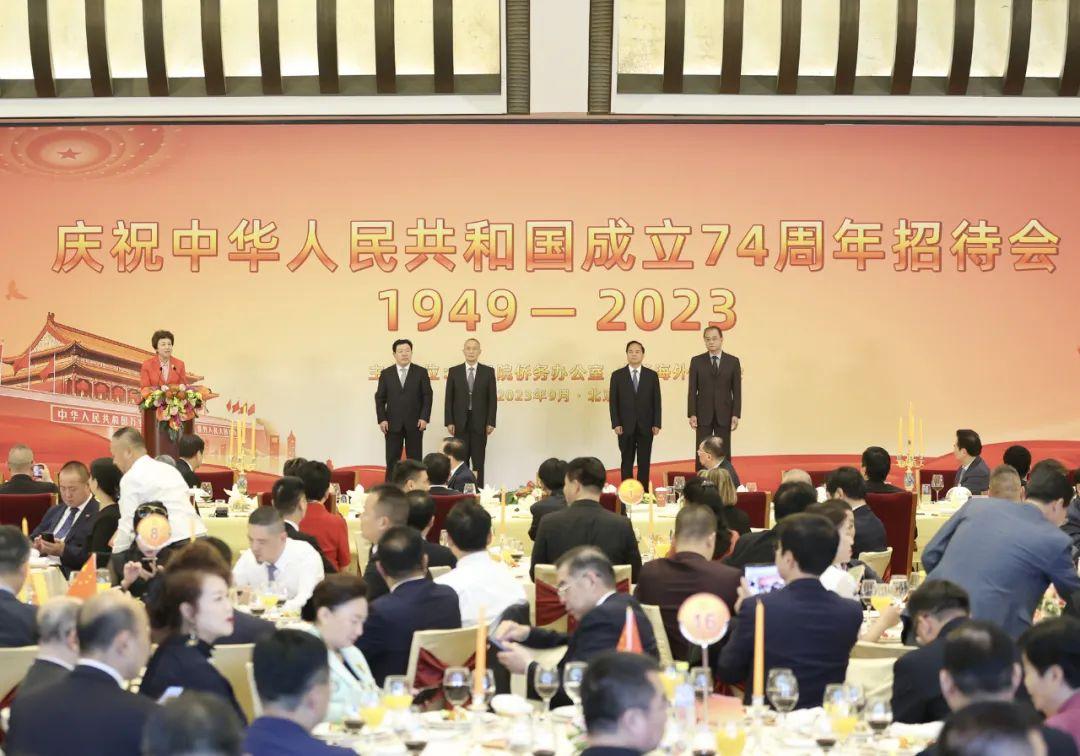 座谈会后,中国国务院侨务办公室、中华海外联谊会在钓鱼台国宾馆举行招待会,各涉侨部门邀请的海内外侨界代表共400余人欢聚一堂,庆祝新中国成立74周年。参加活动的侨界代表们纷纷表示,中国取得巨大的发展成就“侨”有荣焉,愿继续发挥自身融通中外、联系广泛的独特优势,为中华民族伟大复兴、构建人类命运共同体添砖加瓦!(转载:刘阳 编辑:陈妍 审核:丁莉)