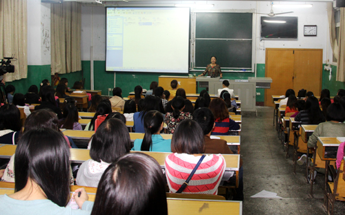 (通讯员 玄珠)9月7日晚上,在文学与传媒学院附102教室,湖北省高中语文特级教师覃国平老师为2010级汉语言文学专业实习生作了“我们为职业人生准备了什么”的精彩讲课。覃国平由自己32年从事教育工作的经历入手,结合她在中学讲授《边城》的公开课视频资料,主要阐述了四个方面的话题:
