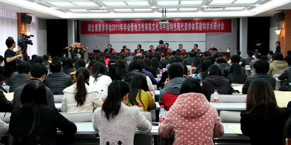 本网讯(记者 周璐)11月26日上午,由我院承办的湖北省美学学会2011年年会暨地方性审美文化与中国特色现代美学体系构建学术研讨会在永利官网科技学院三楼多功能会议厅隆重举行。湖北省美学学会秘书长范明华,会长彭富春,副会长彭修银、聂运伟,恩施自治州人大常委会副主任罗贤美,永利官网纪委书记刘芳震、文学与传媒学院院长杨光宗及来自各大高校的学术代表出席了此次会议。会议由范明华主持。