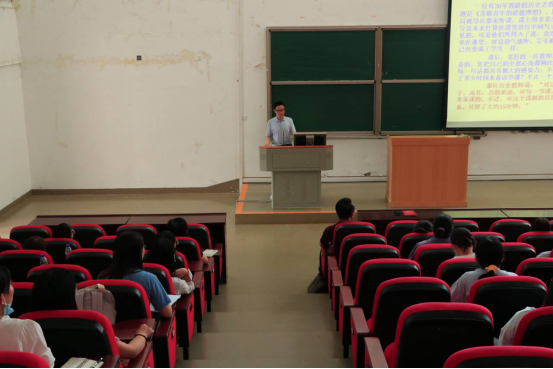 毕文学老师以“如何备课”为切入点展开讲解。他指出,教师要拥有深厚知识储备和坚持不懈的精神,以《孙权劝学》案例备课与龙凤中学课前备课引领表相融合,向新教师展示具体讲解研读教材、学情分析、学习目标、重难点及突破、流程设计、板书设计、练习设计、教学反思等环节,加深学生对如何备课的理解。最后,他向学生分享教师应该阅读的二十本教育著作,希望学生提升专业素养,培养自身能力,与时俱进,敢于创新与实践。