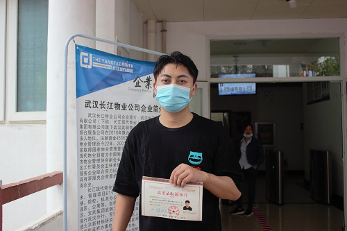 广播电视编导专业李小龙在宿舍楼前留影(记者 刘如博/摄)