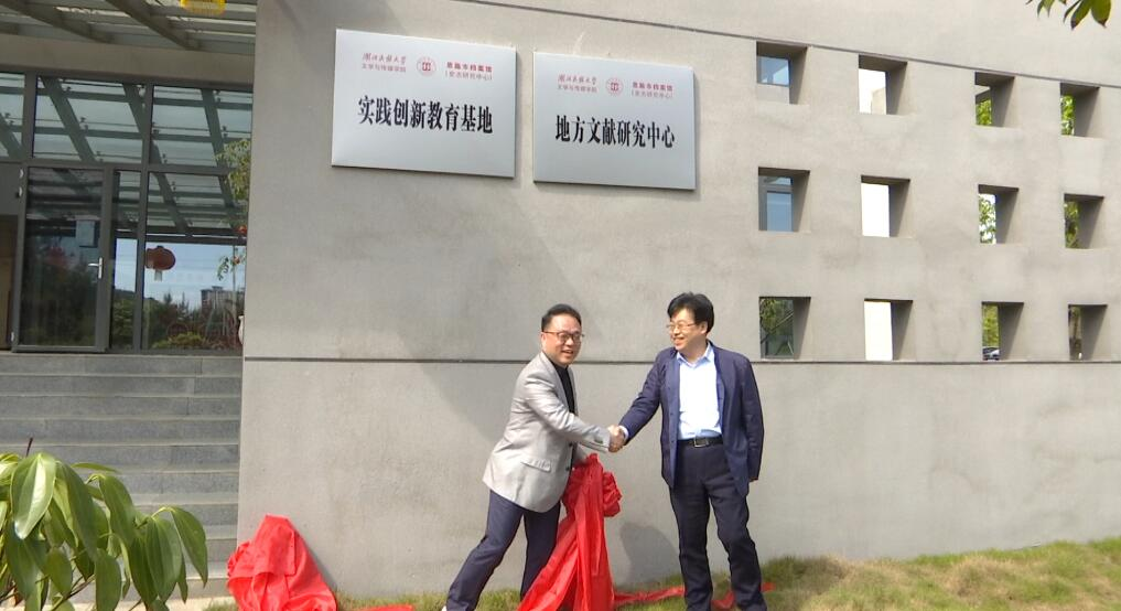 恩施市档案馆馆长汪盛松与我院院长罗翔宇为地方文献研究中心揭牌