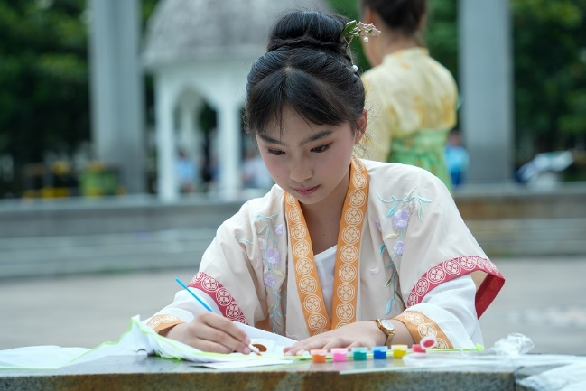 非物质文化遗产研习学社设有DIY灯笼、捏面人、刺绣三个活动。捏面人活动,参与者创作出各式各样的造型,展现参与者丰富想象力;刺绣活动,参与者在工作人员指导下,通过特殊工具一针一线勾勒出美丽的图案,深受参与者喜爱。