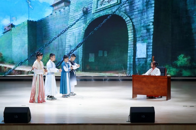 比赛环节。恩施市实验小学504班靖宇小组带来舞台剧《将相和》,以极具张力的现场表现与流畅的台词功底,将完璧归赵、绳池相会、负荆请罪的故事完美呈现在观众眼前,将历史人物特性刻画地淋漓尽致;108班李悟希带来故事会《白鹿报信》,他声情并茂,一人分饰多角,紧扣主题讲述非遗传承在巴东•寇准的故事,以稳重台风赢得观众阵阵掌声;504班美与小组带来舞台剧《晏子使楚》,学生身着个性的服装,倾情演绎每个历史人物,原汁原味地呈现晏子不卑不亢、足智多谋的出使记录;非物质文化遗产研习学社带来舞台剧《精卫填海》,将歌舞穿插于熟悉的剧情中,诠释精卫在大海之上游荡的孤苦无依之感。