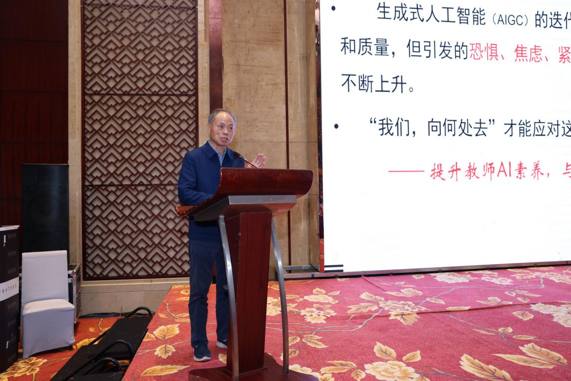 石长顺教授以《教师AI素养:思维、能力与教学》为题,围绕教师AI的素养内涵、素养框架、素养要素三方面展开了论述,指出人类未来必须学会与人工智能共生。同时,他还与座师生共同探讨了未来的新闻传播人才应具备的AIGC能力。