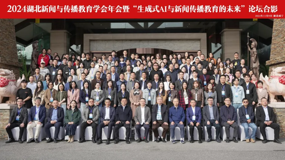 (通讯员 吴龙胜 贾玉琦)11月9日,由湖北省高等教育学会新闻与传播教育专业委员会主办,湖北科技学院人文与传媒学院承办的2024湖北省新闻传播教育学会年会暨“生成式AI与新闻传播教育的未来”论坛在咸宁湖北科技学院举行。来自武汉大学、华中科技大学、华中师范大学等近40所高校140余位老师和学生参加年会。湖北省高等教育学会副会长许奋教授,湖北省新闻传播教育学会会长、武汉大学新闻与传播学院院长强月新教授,湖北省新闻传播教育学会荣誉会长、华中科技大学新闻与信息传播学院石长顺教授等领导专家出席本次会议。我院院长张宏树,副院长刘进华,新闻传播系教师宋艳丽、吴柳林、吴龙胜参加此次会议,学院新闻与传播专业硕士研究生贾玉琦、吴留锁、罗瑞琪、曹晨星4位同学参加研究生论坛并宣读论文。