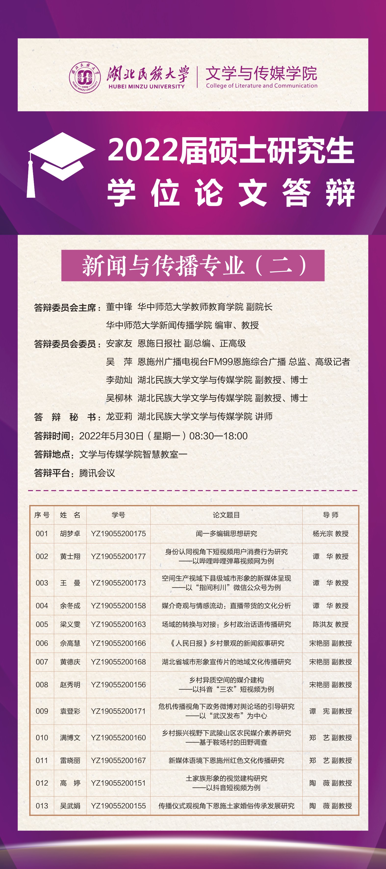 2022届硕士研究生学位论文答辩(新闻与传播专业)
