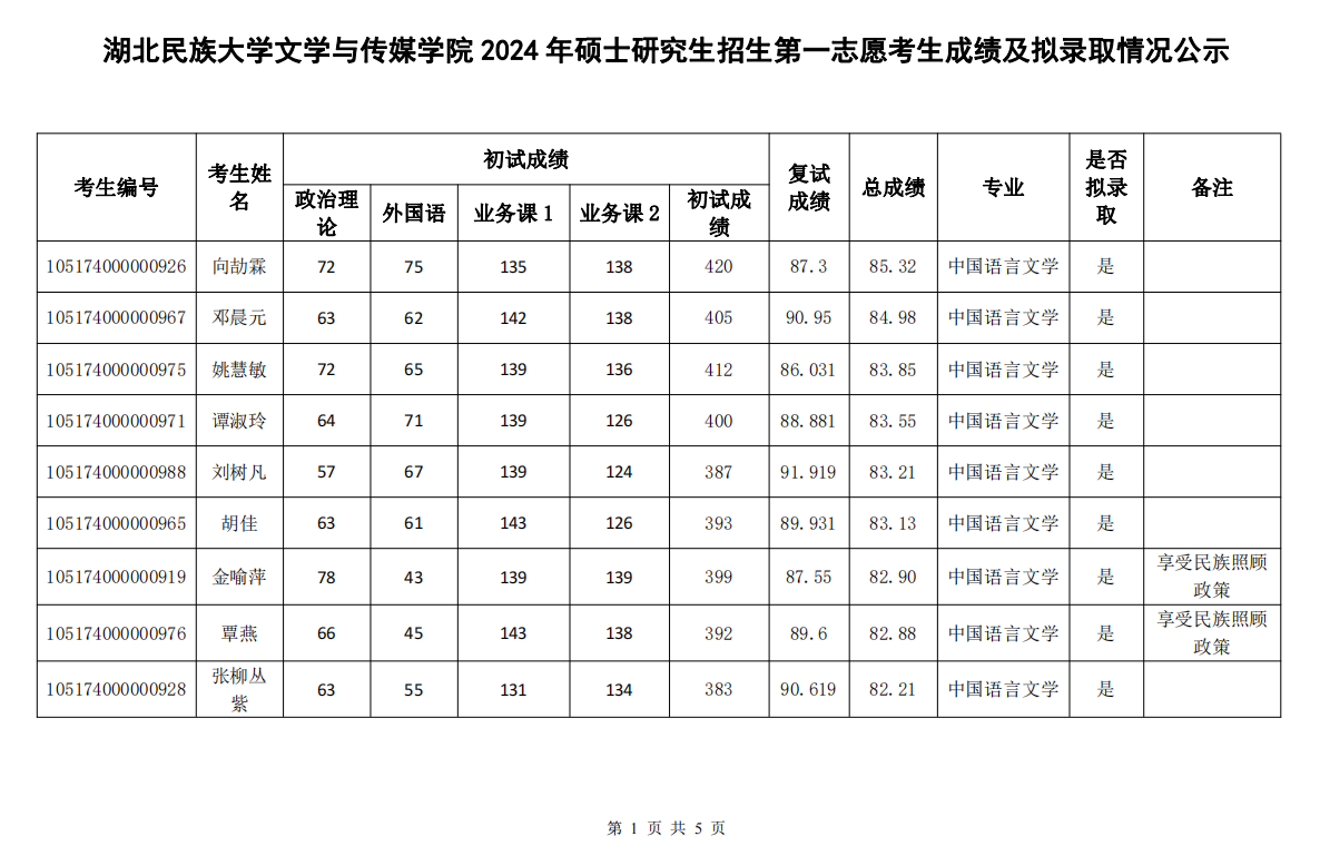 3044am永利集团3044noc文学与传媒学院 2024 年硕士研究生招生第一志愿考生成绩及拟录取情况公示