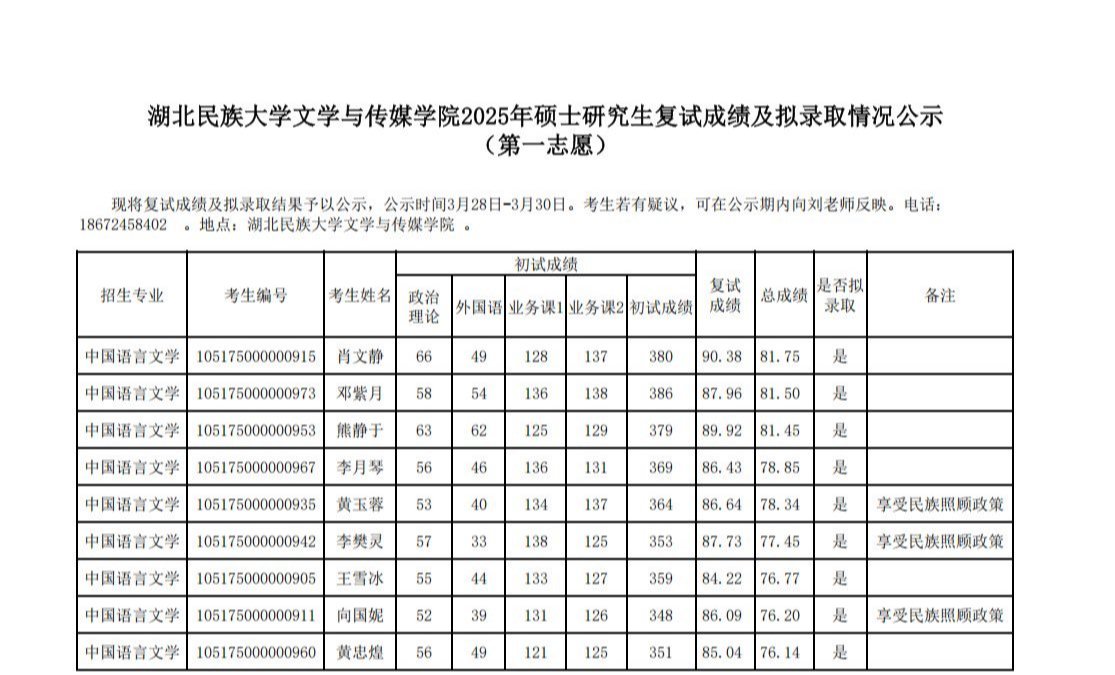 3044am永利集团3044noc文学与传媒学院2025年硕士研究生复试成绩及拟录取情况公示(第一志愿)