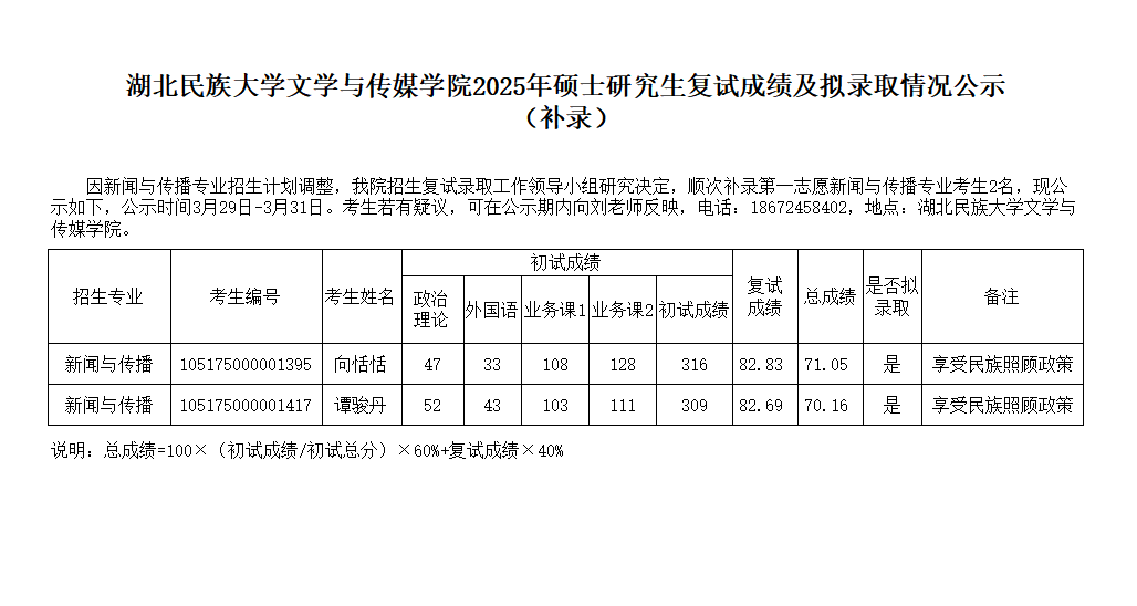 3044am永利集团3044noc文学与传媒学院2025年硕士研究生复试成绩及拟录取情况公示(补录)