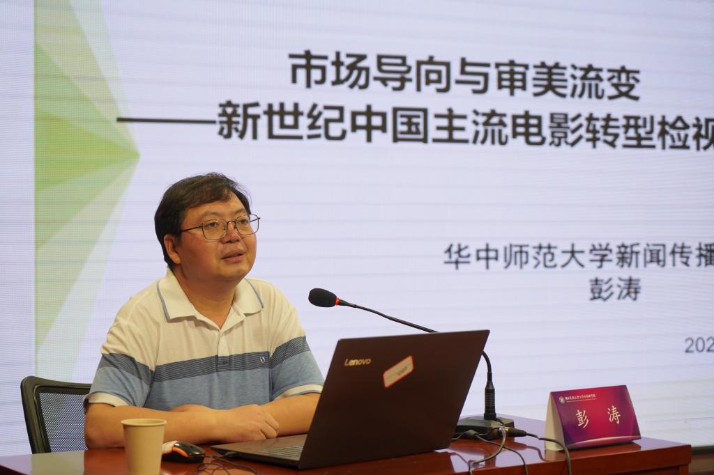 本网讯(记者 杨晨)2021年6月2日,华中师范大学彭涛教授受邀来访我院,在我院演播厅为全院师生带来一场题为“市场导向与审美流变——新世纪中国主流电影转型检视”的学术讲座。