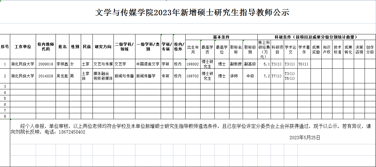 文学与传媒学院2023年新增硕士研究生指导教师公示
