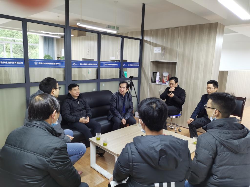 本网讯 (通讯员 陈佐会) 12月7日,湖北省地质局第二地质大队党委书记、队长杨波涌带领实验室主任万传杰、技术负责人邓端富及部分技术骨干来3044am永利集团3044noc武陵山中药材检验检测中心(以下简称中心)考察,洽谈合作事宜,中心主任颜益志接待了杨波涌一行。
