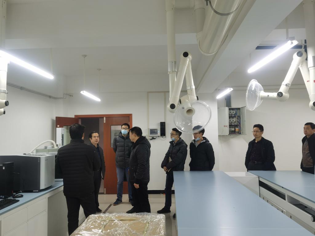 杨波涌一行逐层逐间考察了中心的实验室布局、仪器设备配置等情况,他对中心的建设品质与速度表示由衷的赞赏,在考察过程中及随后的座谈会上,颜益志向来宾介绍了中心的建设定位、人员配备、检测能力等情况。