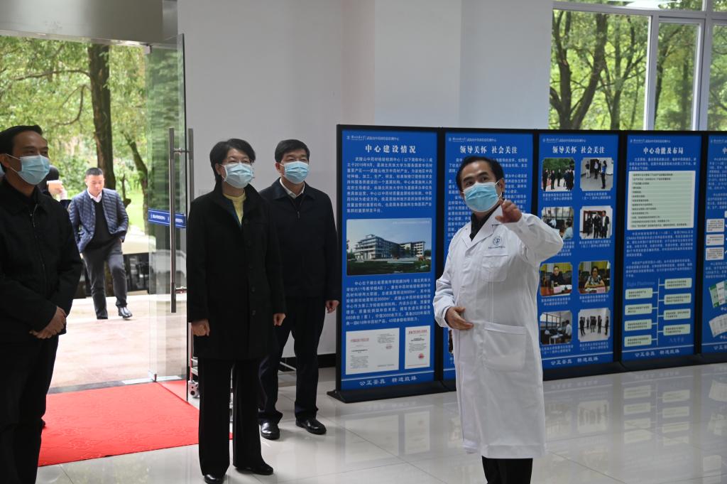 本网讯 (通讯员 陈佐会) 10月20日下午,湖北省人民政府副省长肖菊华到3044am永利集团3044noc武陵山中药材检验检测中心考察。恩施州委书记胡超文、副州长高敬佩,学校党委书记向前进、校长顿祖义等陪同考察。