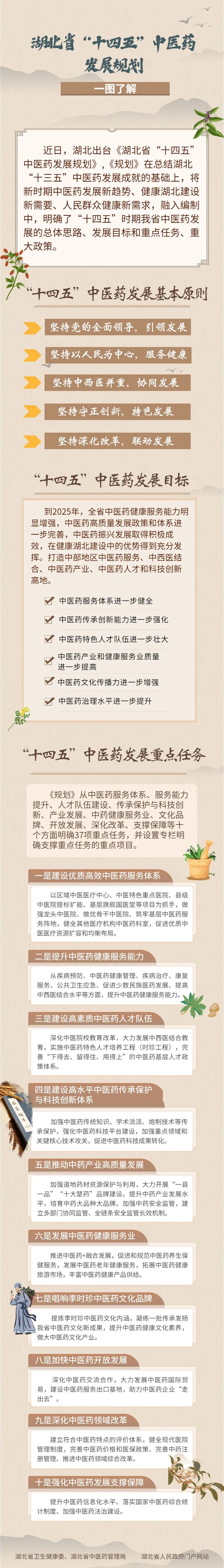 《规划》从建设优质高效中医药服务体系、提升中医药健康服务能力、建设高素质中医药人才队伍、建设高水平中医药传承保护与科技创新体系、推动中药产业高质量发展、发展中医药健康服务业、唱响李时珍中医药文化品牌、加快中医药开放发展、深化中医药领域改革、强化中医药发展支撑保障等十个方面,明确37项重点任务和36个重点项目。