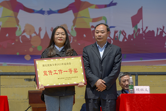 党委宣传部常务副部长唐敦双宣布运动会宣传工作获奖名单。文学与传媒学院荣获运动会宣传工作一等奖,经济与管理学院、法学院、信息工程学院获二等奖,化学与环境工程学院、医学部、体育学院、马克思主义学院、林学园艺学院获三等奖。