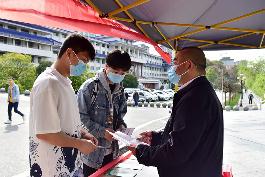 工行恩施支行工作人员和学校财务处、学工处、校团委等部门人员在大学生广场设置宣传咨询点,向过往师生发放金融知识宣传单,宣讲金融消费者基本权利,引导在校学生树立理性消费、珍惜信用的金融理念,提升金融风险防范意识、信用保护意识和使用现代金融服务的能力。
