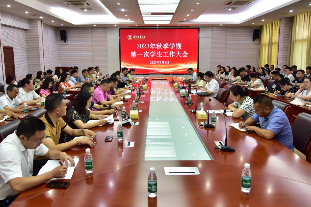 9月1日,学校2023年秋季学期第一次学生工作大会在行政楼3号会议室召开,学校党委副书记邓磊出席会议并讲话。学校相关部门负责人,各学院(部)党委(总支)书记、分管学生工作领导、全体辅导员、学生工作部(处)、校团委全体职工参加此次会议。
