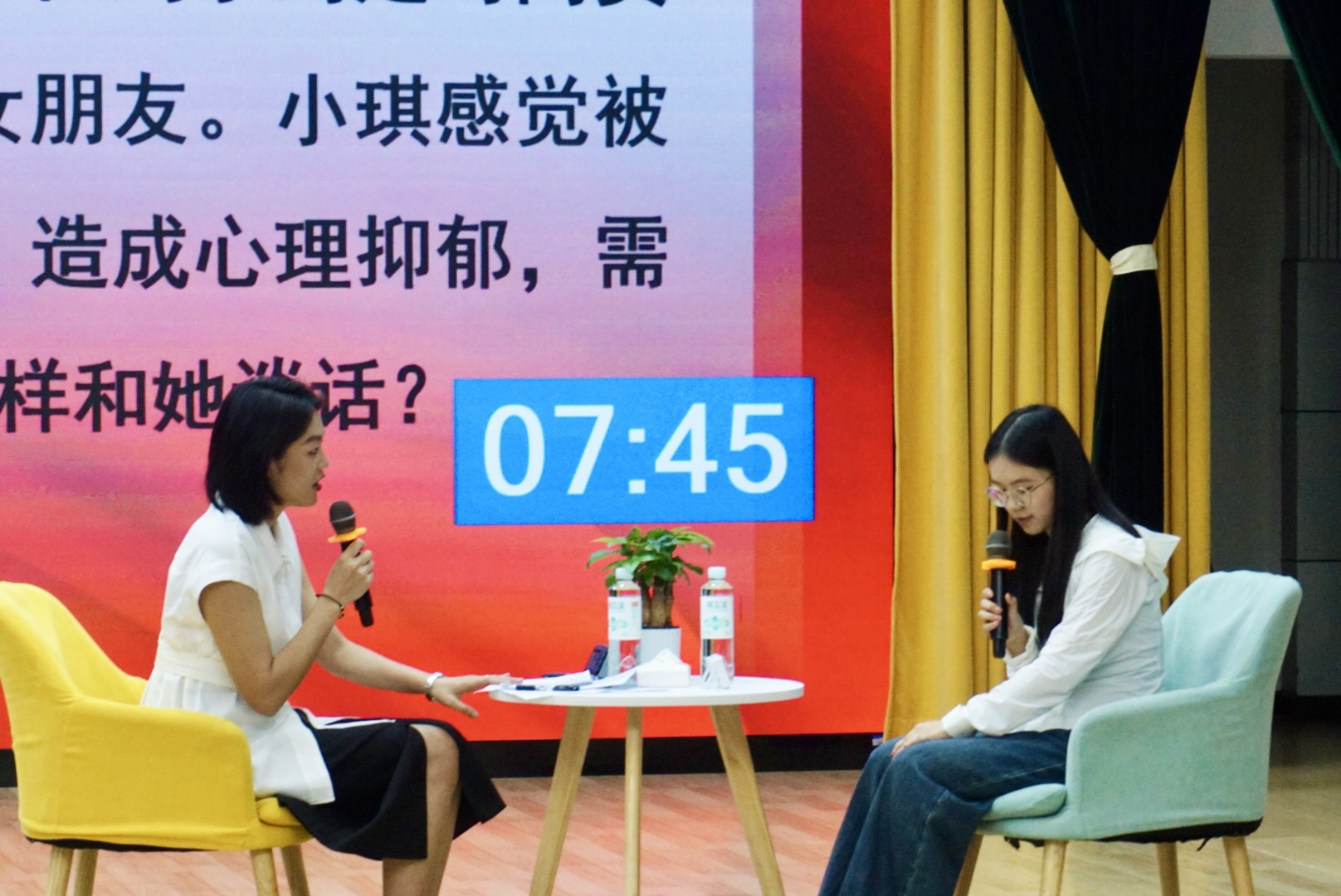 在复赛阶段,选手通过“谈心谈话”的情境再现,展现其对学生性格特征、成长成才规律的把握程度,同时体现了引导学生思想、解决实际问题的能力。12名选手现场抽取案例情境,与助演学生模拟交流,在8分钟的时长有效凸显沟通技巧、共情能力及应急智慧。
