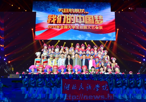手捧五月的鲜花,感恩伟大的时代。2013年5月4日晚8点,“五月的鲜花 我们的中国梦”——2013年全国大学生文艺会演在中央电视台一号演播大厅与全国观众见面。来自全国50余所高校的近1000多名青年学生,通过央视综合频道、综艺频道,诉说内心的“中国梦”。永利官网64名学生独立完成的少数民族传统体育技巧集锦《欢聚》用艺术的手法展示竹马、三人板鞋、绣球、押枷、赛龙舟等民族传统体育项目,成功地展示了少数民族青年昂扬向上、充满活力的精神风貌。节目独特的编排视角、浓郁的文化底蕴、华美的民族服饰和精湛的表演技巧赢得了广泛好评。这也是永利官网第三次登上“五月的鲜花”的舞台。永利官网党委副书记吴建清应邀在直播现场观看了晚会。