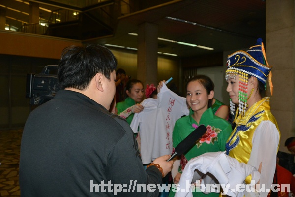 在北京期间,学校党委宣传部工作人员还和参加演出的少数民族地区的高校开展联谊活动,发起了“民舞会友”、“互赠队服”活动,通过开展这些联谊,使永利官网学生与兄弟院校学生加强交流,建立友谊。中央电视台新闻频道、中国网络电视台、人民网等媒体均对永利官网开展的活动进行了采访和报道。