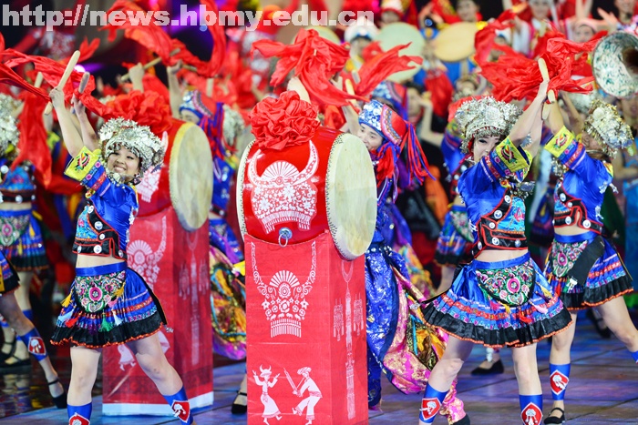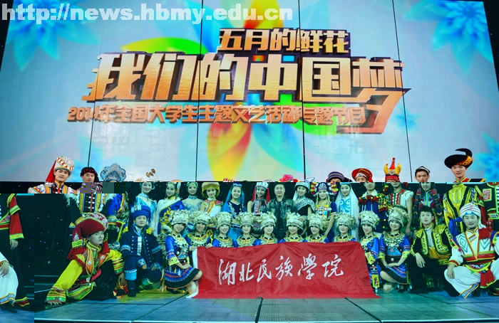 中央台从2011年起举办《五月的鲜花》五四青年节专题节目,永利官网选送的节目连续四年入选,成为少数的没有缺席《五月的鲜花》的学校,并且永利官网学生连续四年都入选“五月的鲜花艺术团”,每年都参与了多个节目的演出。多年执导晚会的阿朵导演表示,湖北民族学院的同学们专业功底比较过硬,学生组织纪律性强,服从导演组安排,并且有热情,给导演组留下的印象很好。在《鼓舞中华》的排练现场,共有四所学校参加该节目演出,阿朵导演评价永利官网的《苗鼓》:“演员们把苗族妹子的辣妹子劲儿都表现出来了,舞蹈非常的接地气,很有专业演员的样子。”