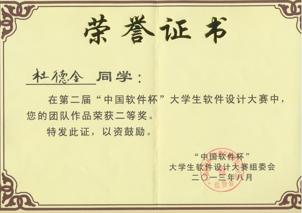 在2012年信息工程学院计算机科学与技术专业部分学生参加第一届中国“软件杯”大赛的基础上,通过总结上次比赛经验的不足,认真做好各项赛前工作,并于2013年4月份组织部分指导教师及学生参加了第二届中国“软件杯”大学生软件设计大赛。本次比赛创新实践中心共有12个队约36人报名参赛,经过两个多月的认真准备、选拔、培训及指导,最终在6月30日前成功提交8件作品。经过参赛师生的共同努力,在总结上次比赛失败教训的基础上,在全国500多所高等院校2216件参赛作品当中,永利官网最终有3件作品成功入围现场决赛。8月25-27日在南京航空航天大学举行的第二届中国“软件杯”大赛现场决赛中,经过现场展示、综合评审与答辩评审三个环节,永利官网信息工程学院参赛选手杜德金、黄辉、黄登峰等3名同学的作品“百信通信”得到了全场评委专家的一致好评,最终荣获了全国二等奖。其他两支参赛队的作品在现场表现也不错,获得了“最佳表现奖”等奖项。