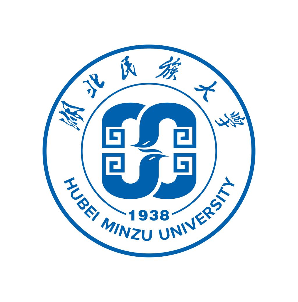校徽以湖北民族大学的首写拼音字母“H”“M”为主要设计切入点,由代表民族文化的单八勾纹样、代表地域文化的火凤凰形象与代表行业文化的书本形象组成。字母“M”变形为打开的书本和凤凰的外形,其负空间则形成了字母“H”。
