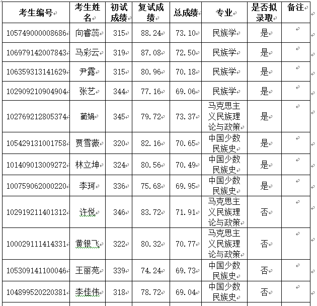 3044am永利集团3044noc民族学与社会学学院2019年研究生成绩及拟录取情况公示(调剂生)