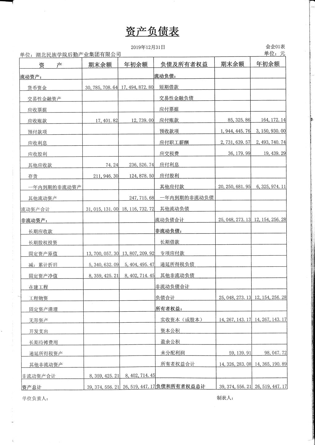 校办企业资产、负债、国有资产保值增值等信息(2019年度)