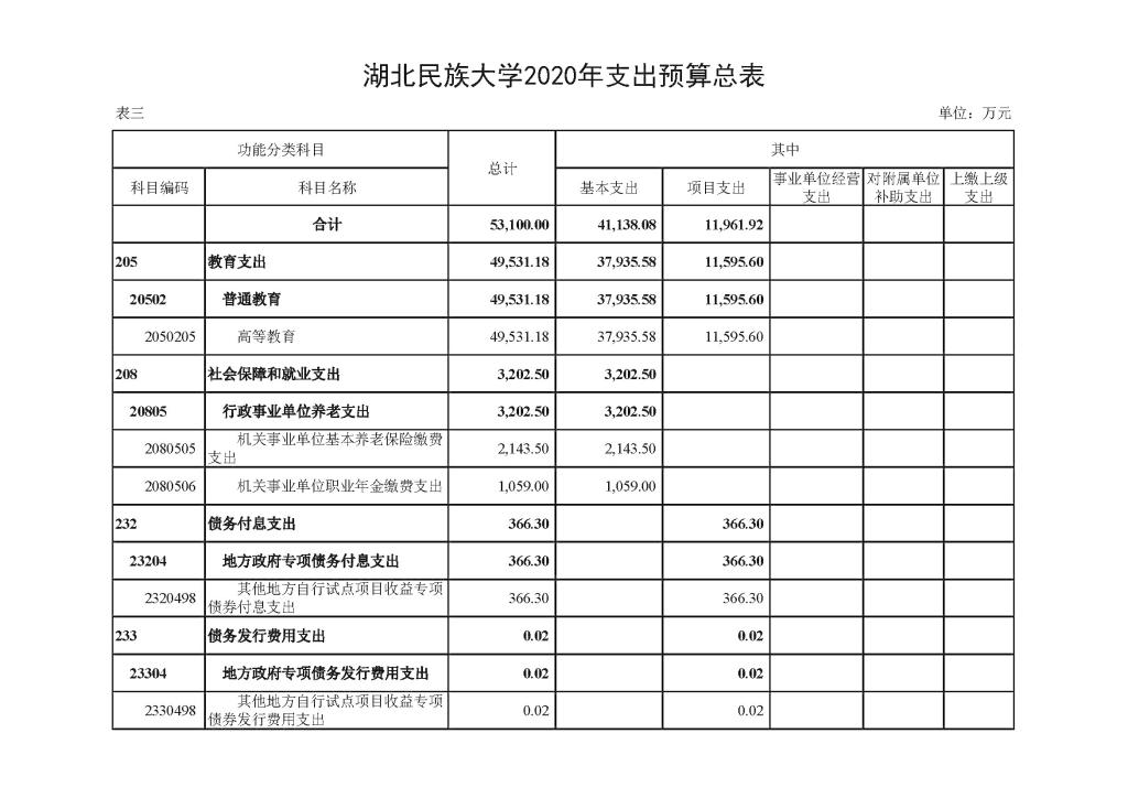 2020年支出预算总表