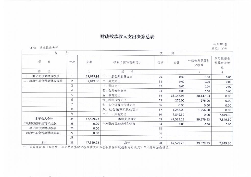 2019年财政拨款收入支出决算总表